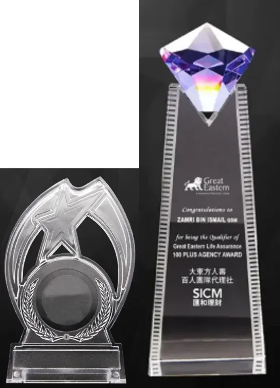 Crystal/Glass TrophiesRM40 โ€“ RM250+Corporate awards, premium recognition