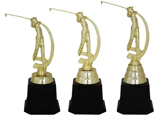 Plastic trophies are ideal when you need many awards for categories like longest drive, nearest to pin, or team placings. While economical, modern plastic golf trophies come in elegant gold finish with golfer figurine tops.